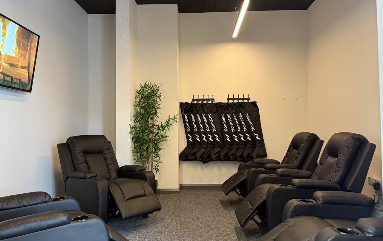 A dedicated compression therapy area with high-quality recovery boots.